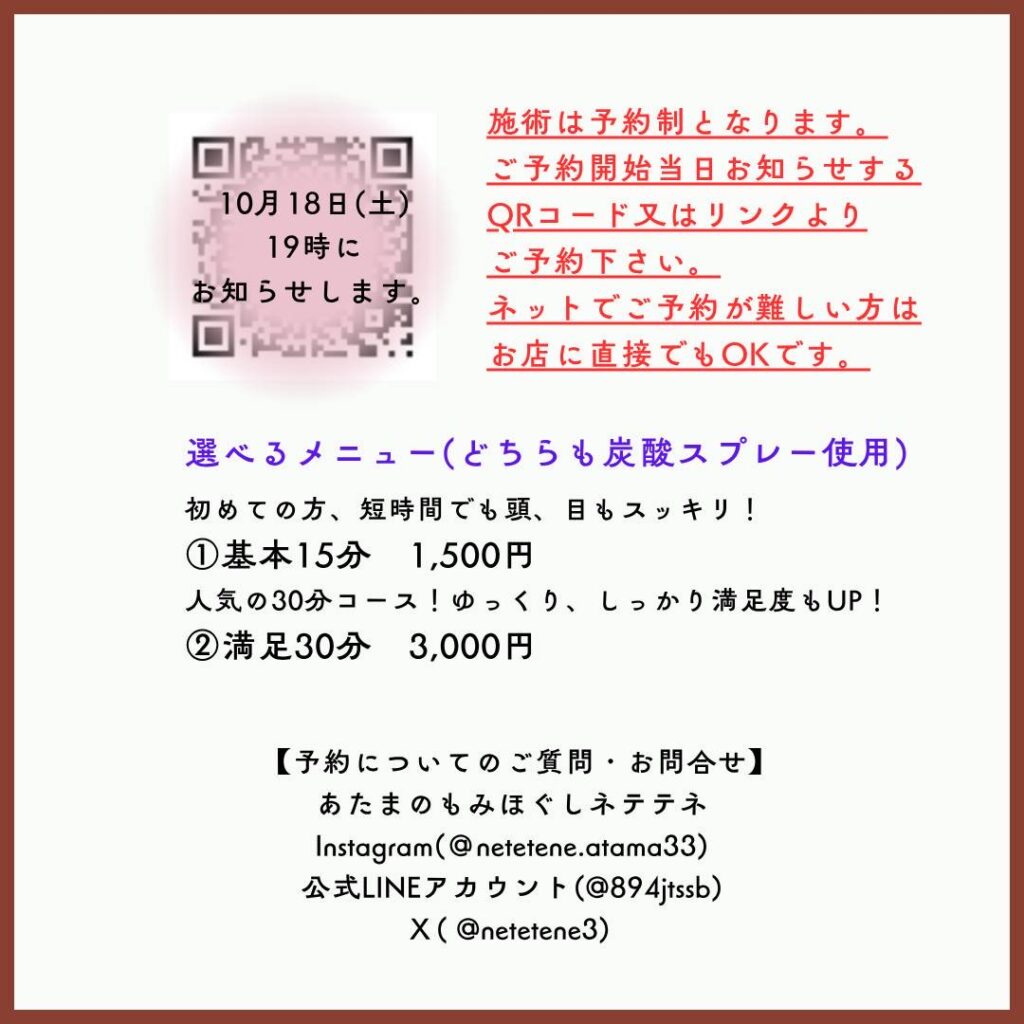 いつも人気で、予約開始からすぐに埋まってしまう“あたまのもみほぐし”。残暑に苛まれながらも頑張ったご褒美として、ネテテネさんに頭をもみほぐされませんか???