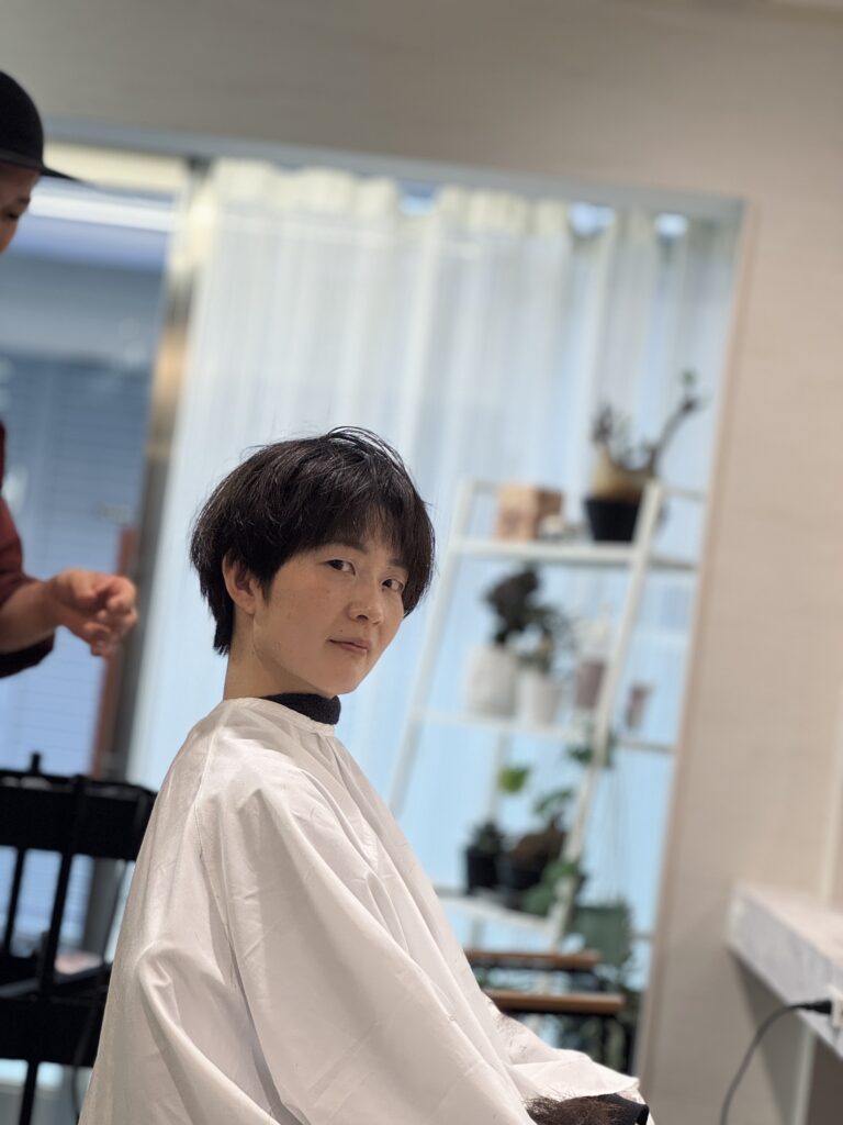 背中まであった髪の毛を30cm以上ザックリ切ってました。
