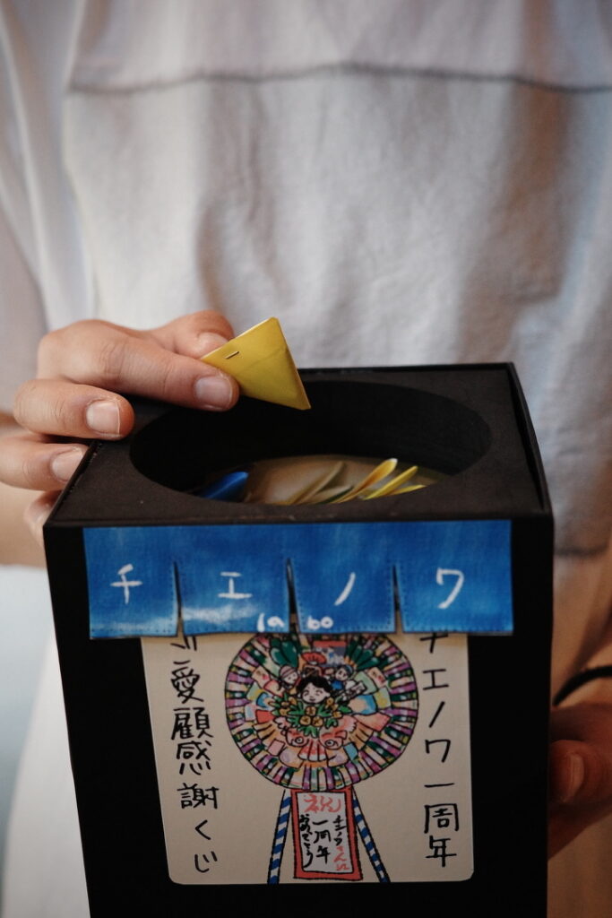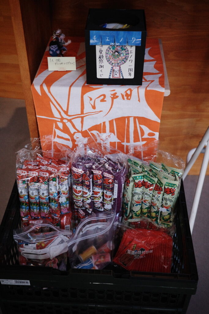 また、開店時に「お菓子の花輪」を送ってくださったお馴染みのお友達の皆さんからは、Laboへお越しくださるみなさんに向けて「チエノワ1周年ご愛顧感謝くじ」をプレゼントしていただきました。