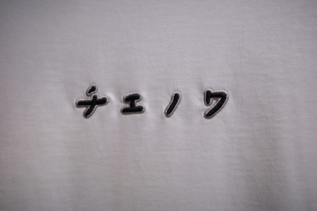 前面の胸の部分にある「チエノワ」は刺繍です。こだわりポイントの一つ。