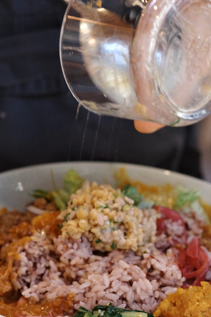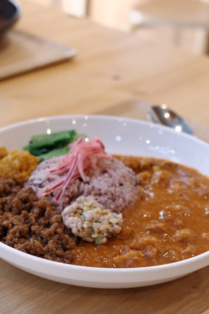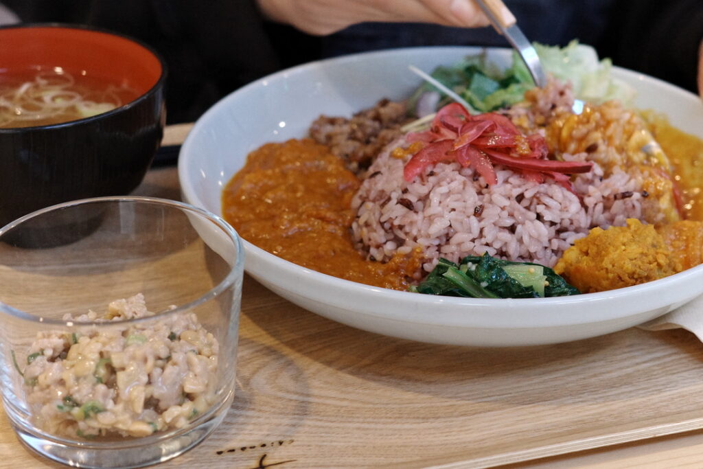 タイトルにある通り、「3種のあいがけカレー×スタミなっとう」の組み合わせにハマっているので、この組み合わせをご注文の方にはひっそりとオススメしてきました。