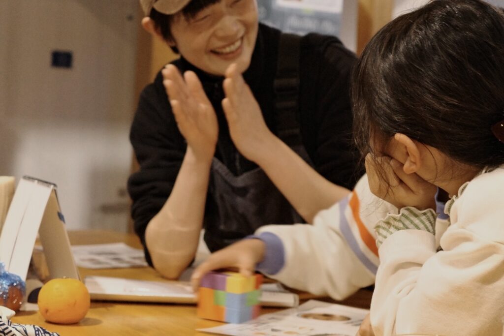 よく来てくれるお子さんからブロックパズルの組み方を教えてもらったり、