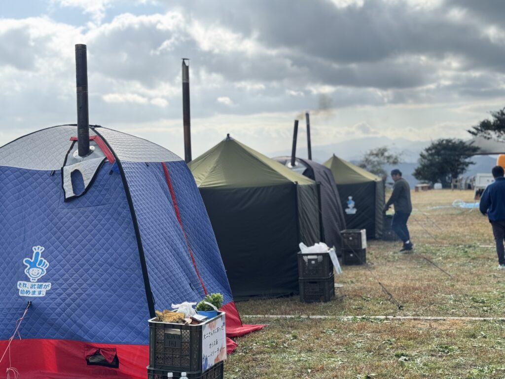 メインイベントである「天空のオアシス」は、武雄市にある眉山キャンプ場にて開催されるアウトドアサウナイベント。眉山の中腹にあるキャンプ場で、ロケーションが最高な上に、至れり尽くせりな”温かさ”が唯一無二な魅力があります。